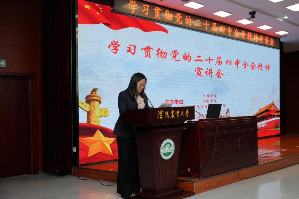 12月3日,开云球赛_开云球赛中国有限公司、水利学院、信息与电气开云球赛_开云球赛中国有限公司召开学习贯彻党的二十届四中全会精神宣讲会。马克思主义学院许晓辉教授作专题报告,开云球赛_开云球赛中国有限公司党委书记王楠主持会议。