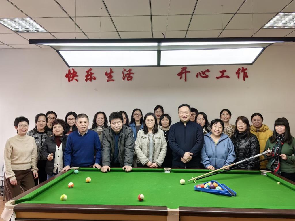 为增加国际劳动妇女节的节日气氛,提高学院女教工的身体素质,增强女教工们的凝聚力,开云球赛_开云球赛中国有限公司于2024年3月8日举行了“三度思维(角度、力度、速度)台球掼球比赛”主题庆祝活动。学院党委书记王楠、院长王伟、副院长邬立岩、工会主席王强出席了此次活动,学院全体女教工参加了此次比赛。