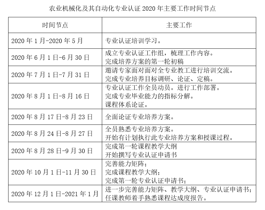 农业机械化及其自动化专业认证工作小组