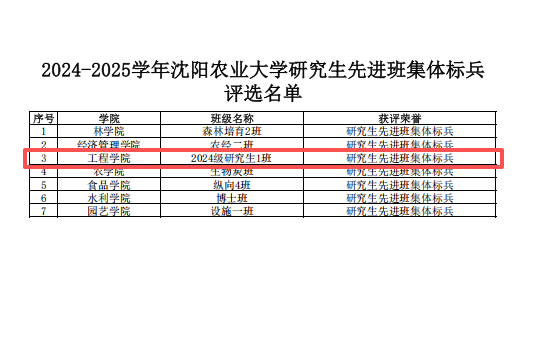 近日,学生处公布2024-2025学年沈阳农业大学研究生先进班集体及标兵评选结果。根据《关于做好2024-2025学年度研究生评优表彰工作通知》,经班级申请,学院初评、推荐,学校评审,我院2024级研究生1班荣获2024-2025学年年沈阳农业大学研究生先进班集体标兵。(开云球赛_开云球赛中国有限公司 董瀚辰)